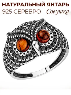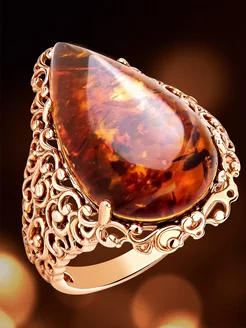 Кольцо серебро 925 позолоченное с натуральным янтарем