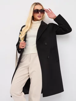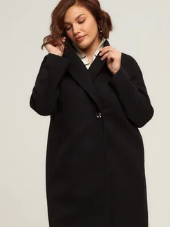 Пальто стеганое утепленное зимнее черное с капюшоном