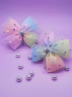 Бантики с фатином с блестками радужные градиент