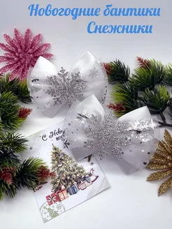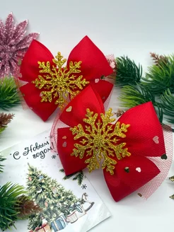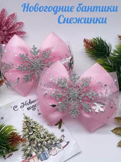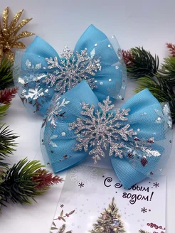 Новогодние бантики для волос на резинках снежинки