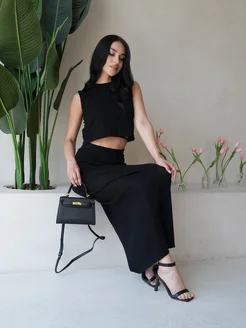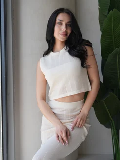 Костюм пляжный двойка вязаный с юбкой