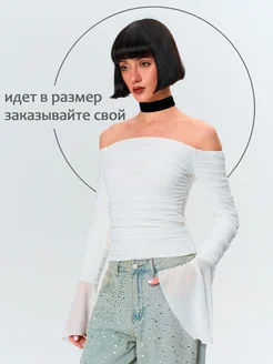 Лонгслив драпированный с открытыми плечами
