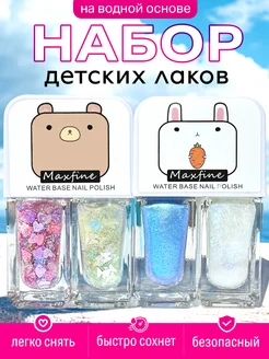 Прозрачный лак для ногтей детский с блестками и сердечками