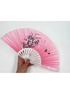 Складной веер с пластиковым основанием "Розовая Сакура"