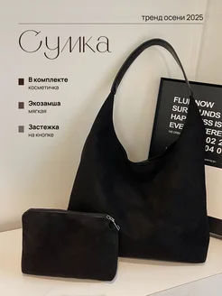 Сумка шоппер через плечо замшевый с косметичкой А4