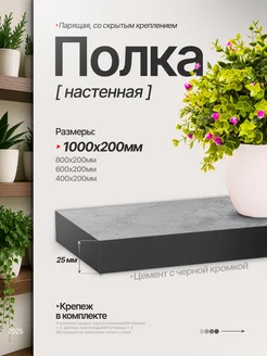 Полка настенная 100*20 цвет цемент светлый с черной кромкой