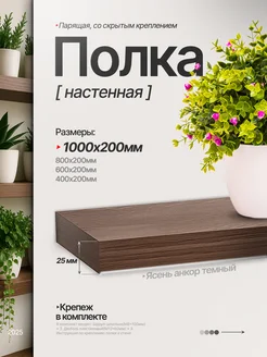 Полка настенная парящая 100*20 ясень анкор темный