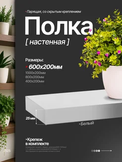 Полка настенная парящая 60*20 цвет белый