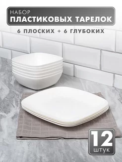 Тарелки набор пластиковые суповые и обеденные, 6+6 шт