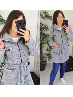 Кардиган на молнии теплый с поясом