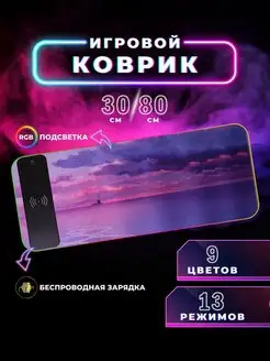 Коврик для мыши с подсветкой RGB 80*30 беспроводная зарядка