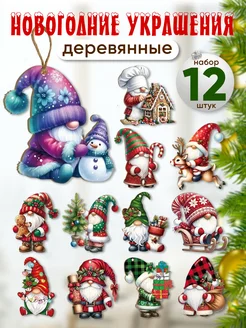Елочные игрушки новогодние набор 12 шт. Гномы