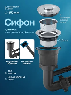 Сифон для мойки из нержавеющей стали с большой горловиной