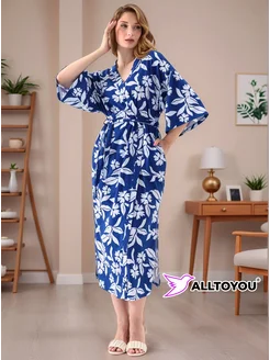 Халат домашний на запах длинный 100% хлопок - кимоно хб