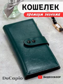Кошелек большой темно-зеленый на кнопке и молнии