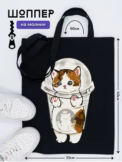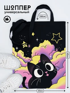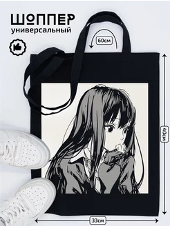 Сумка шоппер аниме тканевая шопер черный с принтом