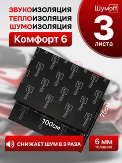 Шумоизоляция автомобиля Комфорт 6, 3 листа, 6 мм