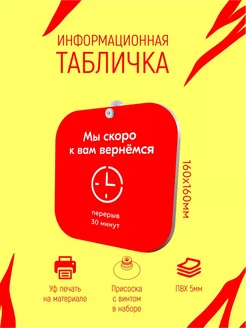 Табличка "Скоро вернемся" 16х16см со стираемым маркером
