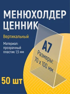 (50 шт) Менюхолдер А7 вертикальный прозрачный (тейбл-тент)