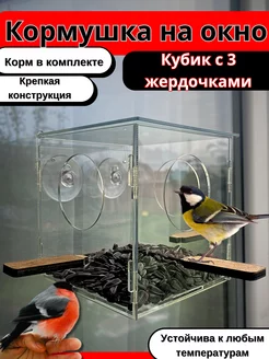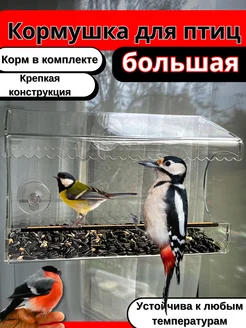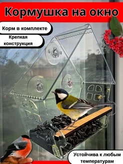 Кормушка для птиц на окно на присосках прозрачная уличная