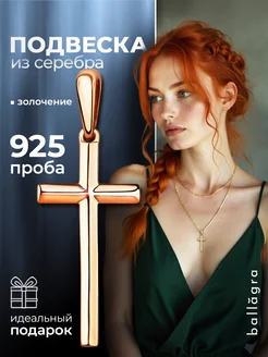 Декоративный серебряный с позолотой крестик 925 подвеска