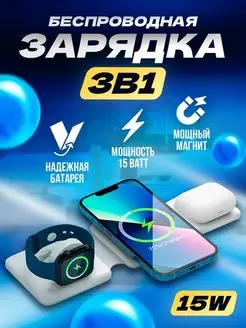 Беспроводное зарядное устройство для телефона 3в1 магнитная