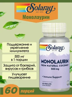 Монолаурин, Monolaurin 500 мг, 60 капсул