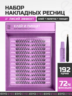Накладные ресницы пучки Лисий эффект с клеем изгиб C FOX