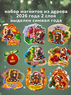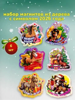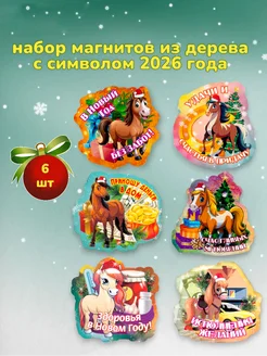 Деревянные магниты с символом 2026 года Лошадь 6шт