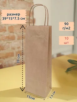 Крафт пакет с кручеными ручками 39х15х7.5 см 10 шт