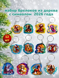Деревянные магниты с символом 2026 года Лошадь 12шт