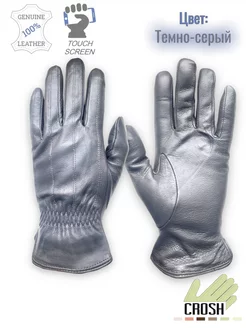Перчатки кожаные "CROSH" SMW-103-ts_GREY(подклад из шерсти)
