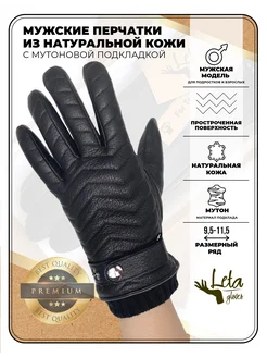 Перчатки кожаные "Leta" OlbMP-005_BLACK (плюш)