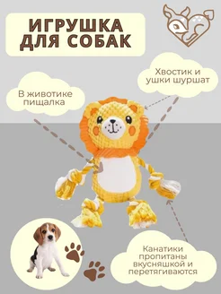 Игрушка для собак мягкая плюшевая пищалка лев канат