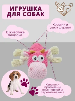Игрушка для собаки и щенков плюшевая пищалка грызунок корова