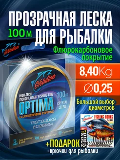 Леска зимняя рыболовная 0,25мм прозрачная, флюрокарбон