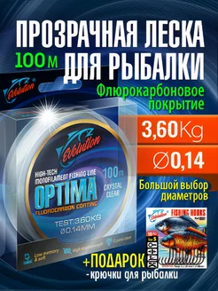 Леска для зимней рыбалки 0,14мм прозрачная, флюрокарбон