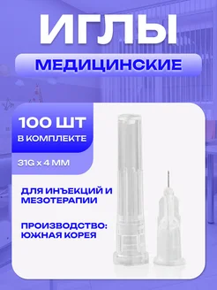 Иглы для мезотерапии инъекционные 31G x 4 мм 100 шт