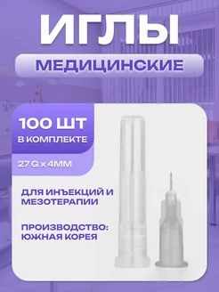Иглы для мезотерапии инъекционные 27G x 4 мм 100 шт