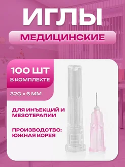 Иглы инъекционные медицинские 32G*6мм 100 штук