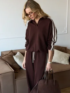 Костюм спортивный двойка оверсайз с брюками и свитшотом