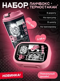 Ланч-бокс и стакан с клапаном комплект детский для перекусов