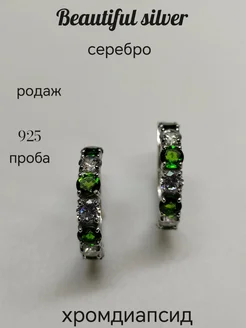 Серьги серебряные 925 пробы с хромдиопсидом