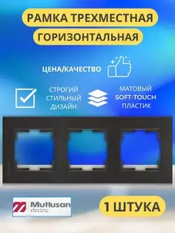 Рамка для розетки черная трехместная горизонтальная 1 шт