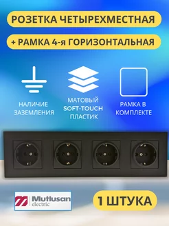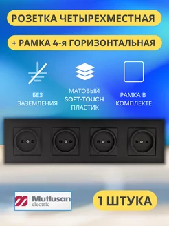 Розетка черная четверная без заземления гориз рамка