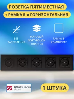 Розетка черная 5 гнезд без заземления гориз