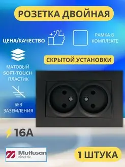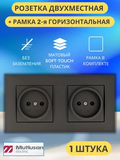 Розетка двойная черная без заземления с рамкой