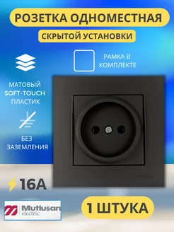 Розетка черная без заземления с рамкой 1шт
