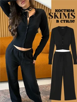 Трикотажный приталенный костюм двойка в стиле SKIMS