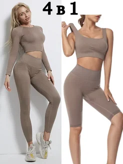 Костюм спортивный для фитнеса и йоги в рубчик 4в1